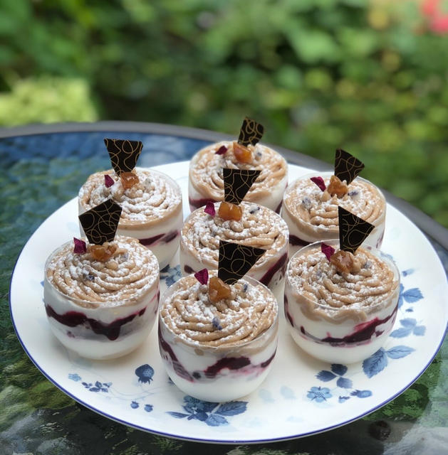 イタリア産の栗のペーストに、ラバンドを煮出したクレーム、クレーム、パティシエ、クレーム.オウ・ブールなどで構成された特製モンブランクリームです。