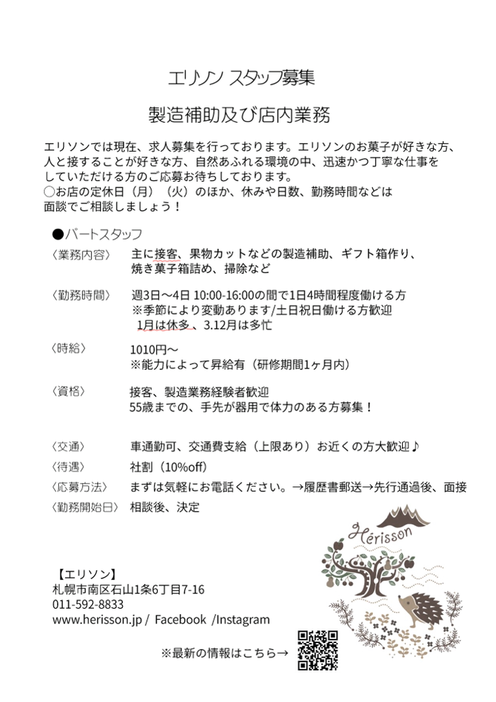 【パートスタッフ募集】